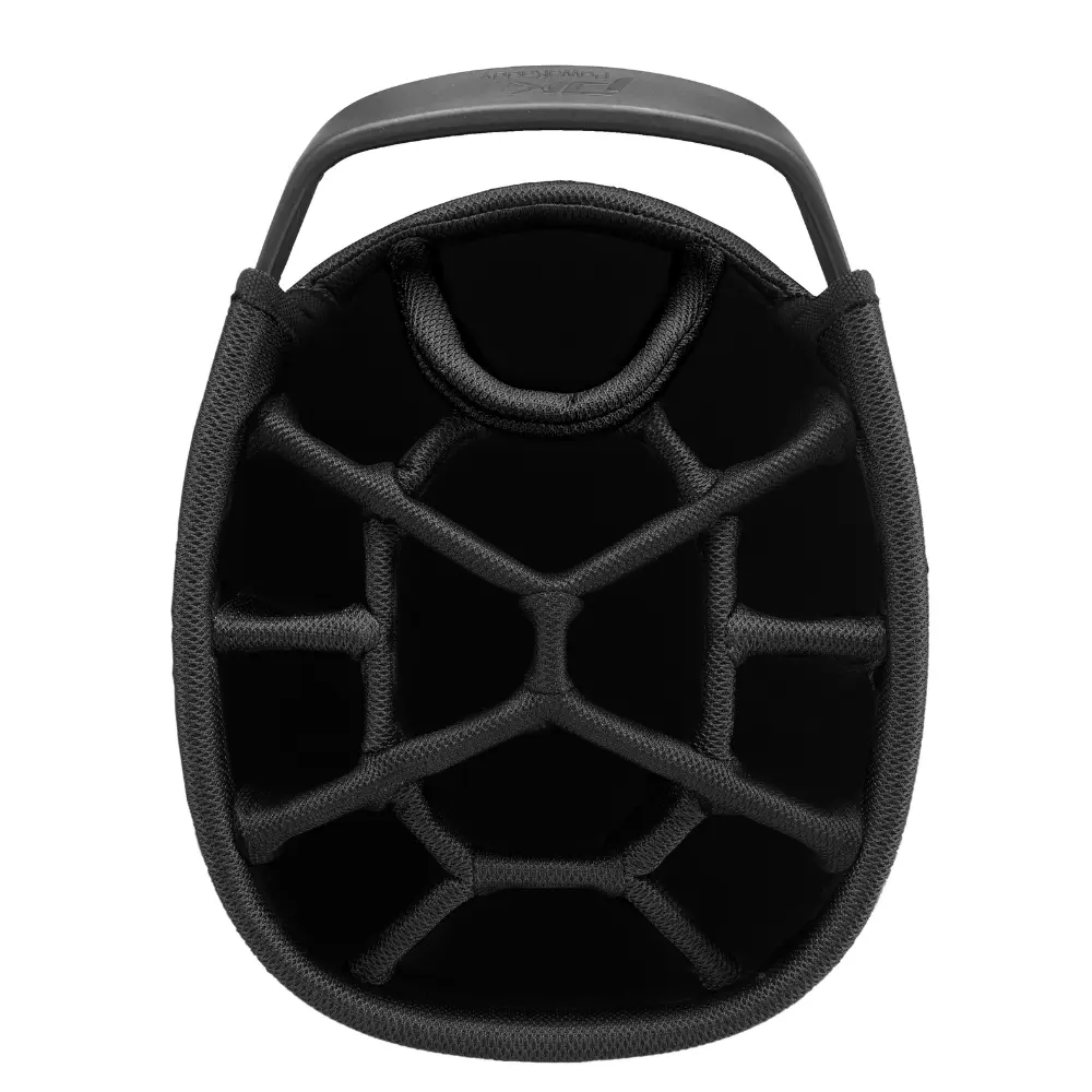 Nueve bolsillos espaciosos brindan toda la organización y almacenamiento que un golfista necesita, incluidos dos bolsillos largos para ropa, un bolsillo para objetos de valor forrado de terciopelo, un bolsillo para nevera y más.